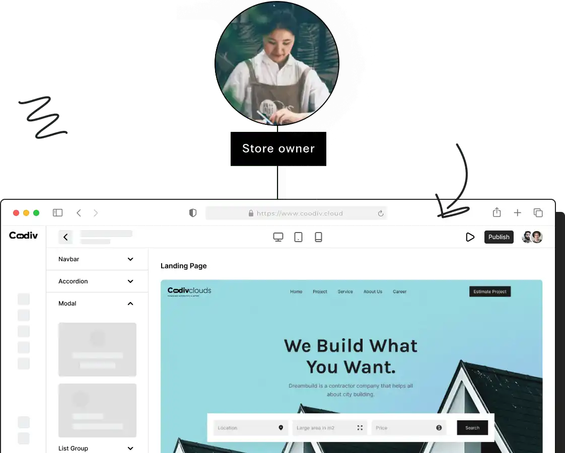 Create a modern website in minutes - no tech skills required. Just choose a design you like, add your content and publish. Plus, you get a domain and hosting included with purchase.
